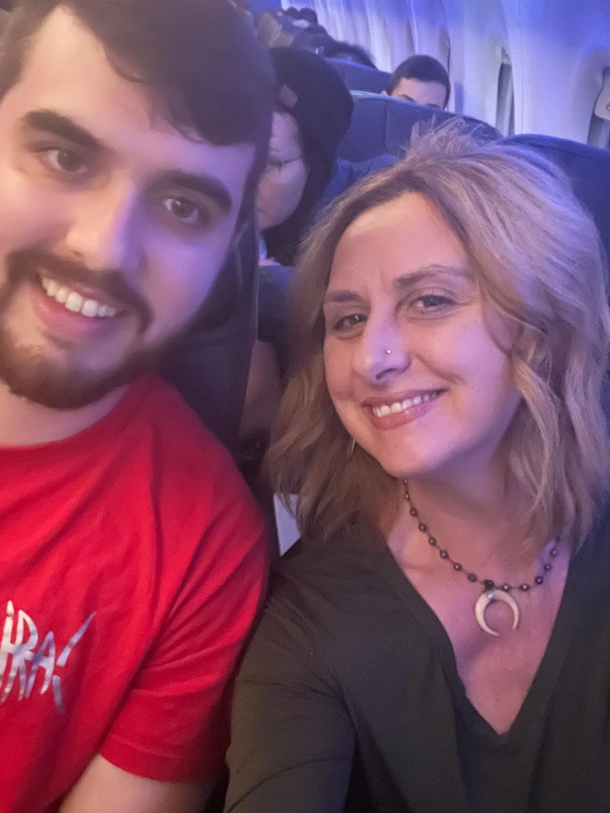 We bought each other a beer, shared some snacks and played a game on the monitor together. Come to find out, Eric was just as bad at trivia as I was, which was refreshing! He looked so much smarter. We laughed at the fact that I told him he was as dumb as me and we decided to play solitaire instead. We laughed that my daughter in law text and asked me where I was (she was tracking my location and it said I was in a field somewhere!) So happy they keep tabs on me! We laughed that my son text to make sure I wasn’t breaking any rules and had my phone on airplane mode. (I was using the airline Wi-Fi) He knows me so well!